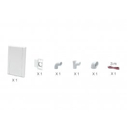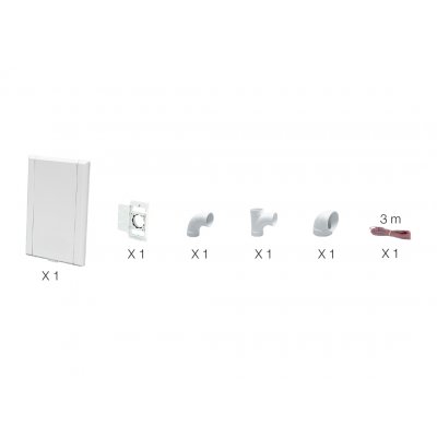 - Comprend une prise pleine porte, une plaque de montage, un coude de 90° long, un T 90° et un coude de départ universel court de 90°