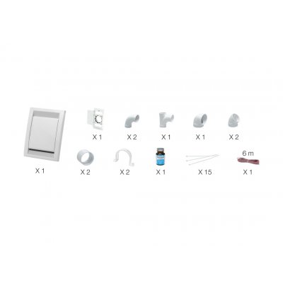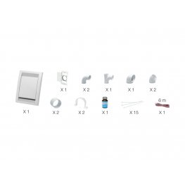 - Comprend 1, 2 ou 3 prises Déco Vac, des plaques de montage, des coudes de 90° longs, un T 90°, des coudes de départ universels courts de 90°, des coudes de 45°, des bagues, des supports à tuyau, de la colle pour PVC, du fil bas voltage, des tye-wraps et un manuel d'installation
