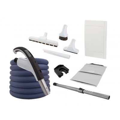 Cet ensemble d’accessoires pour système de flexible rétractable Rétraflex® inclut une porte blanche au design soigné qui s’intègre à tous les décors, un flexible Rétraflex® (au choix :avec ou sans housse), une poignée standard (sans interrupteur), un manchon télescopique, un support à manchon, un tablier à accessoires, ainsi qu’un ensemble de brosses Grand luxe comprenant une brosse à plancher 30,5 cm, un outil rectangulaire, une brosse à épousseter et un outil de coin.